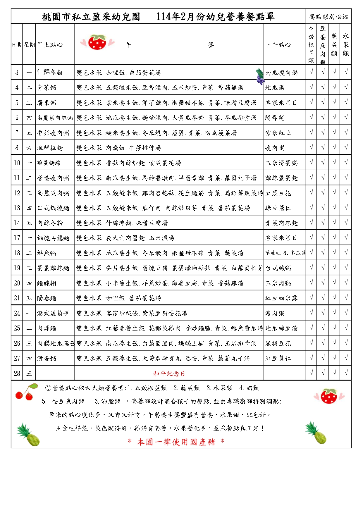 114年2月幼兒營養餐點表