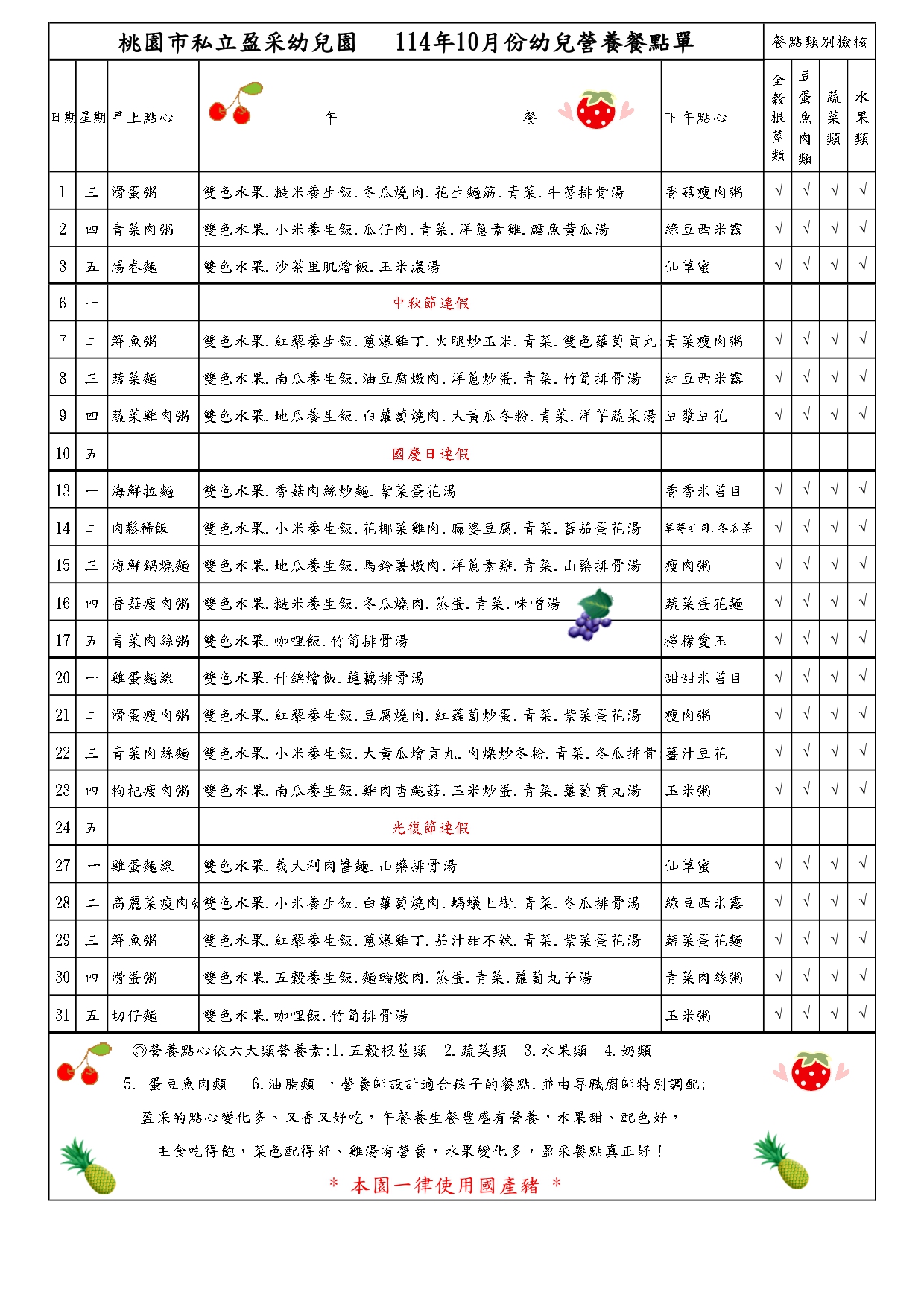 114年10月幼兒營養餐點表