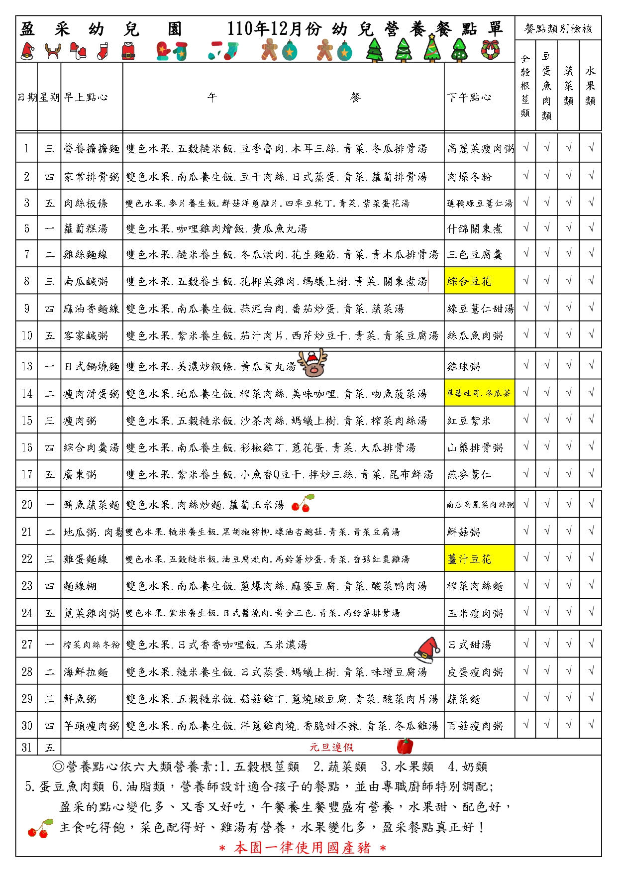 110年12月幼兒營養餐點表