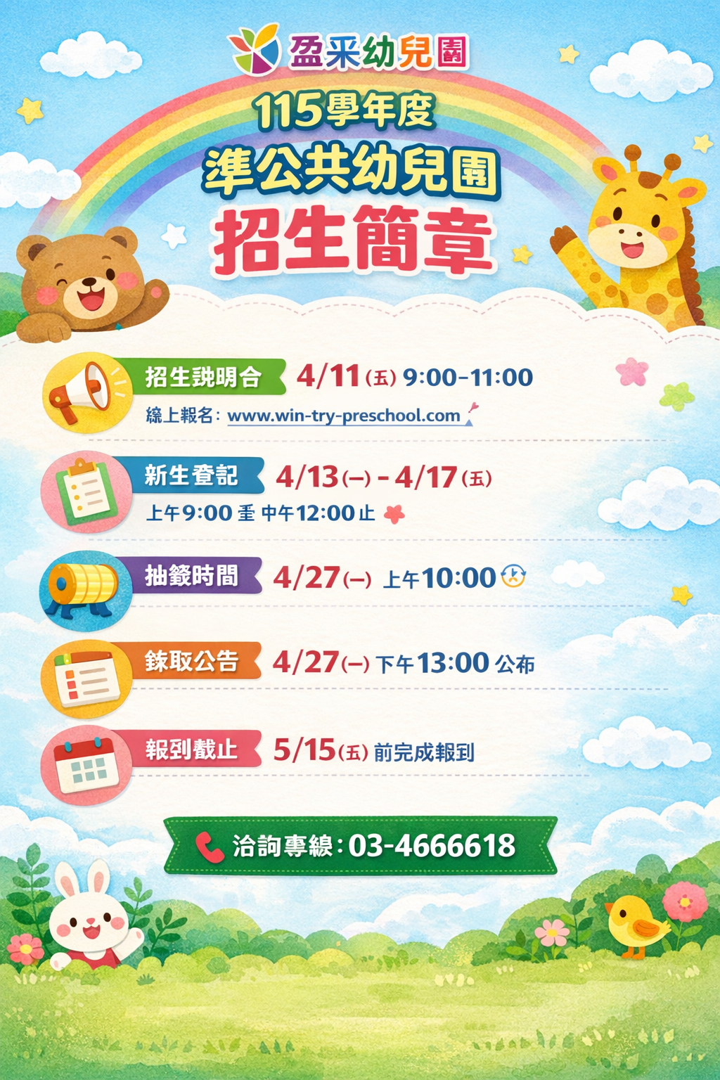 📌 公告於 盈采幼兒園官方網站及盈采FB粉絲團